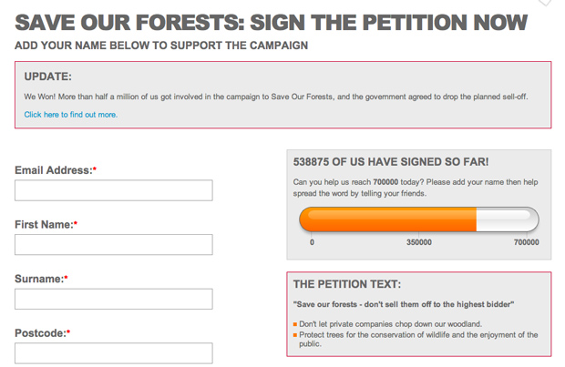 Following a furious public backlash in 2011, the UK government abandoned plans to sell off 258,000 hectares of state-owned woodland. The public forest campaign by 38 Degrees gathered over half a million signatures.