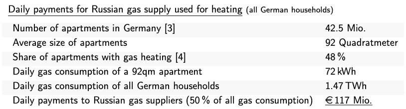 With the current very high prices for natural gas, there is a significant amount of money that all German households with gas heating have to pay for Russian gas every day.