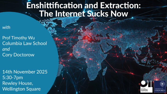 Join Tim Wu (“The Age of Extraction”) and Cory Doctorow (“Enshittification”), two internet activists who’ve been friends since they were small children, for a lively, infuriating and invigorating exploration of the forces that drove the internet to its current miserable state, and a prescription for taking it back and making a new, good internet that is fit for purpose: serving as the digital nervous system of a planetary civilization under dire threat from the climate emergency, genocide, authoritarianism and fascism.
