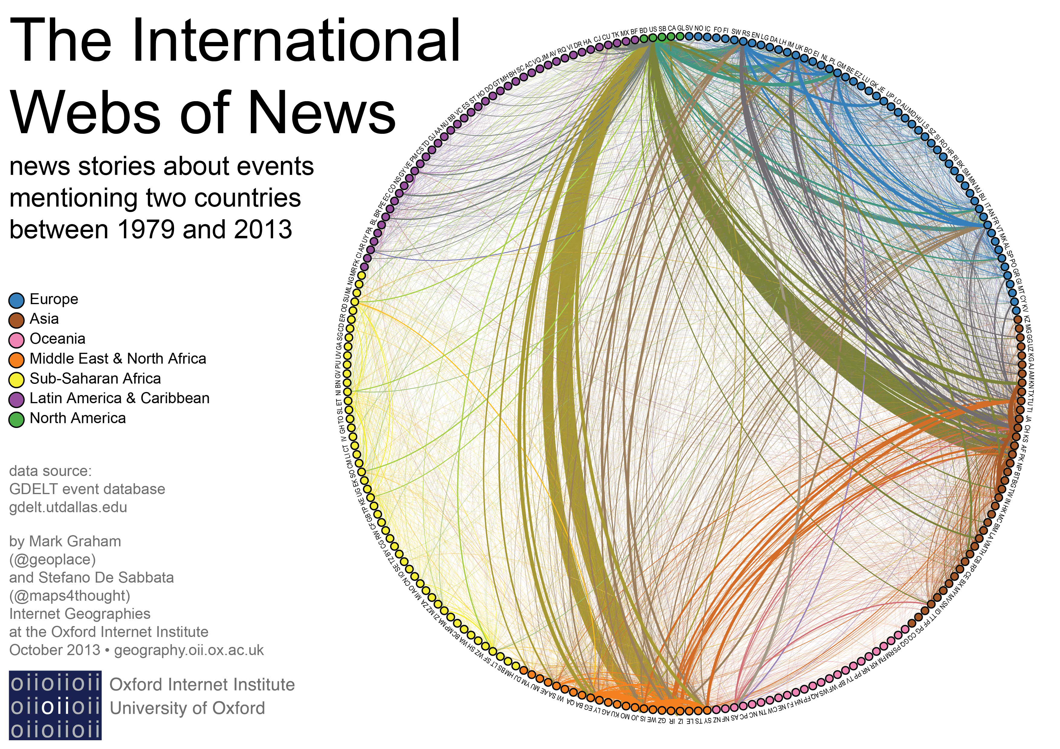 The media inevitably present us with particular biases and objects of attention. This work is designed to show you both the locations and connections present in hundreds of millions of news stories from around the world.