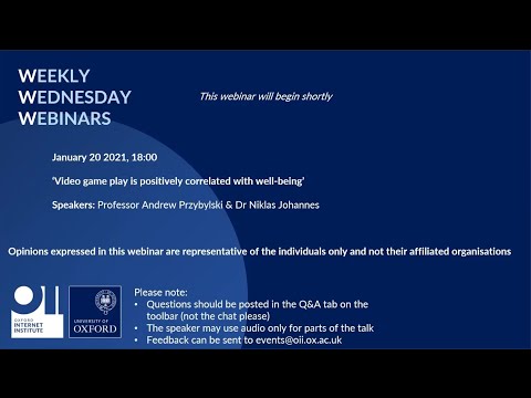 The OII hosts their Director of Research, Professor Andrew Przybylski, and Postdoctoral Researcher, Dr Niklas Johannes. They will discuss their recent ground-breaking study which revealed time spent playing video games can be good for your wellbeing.
